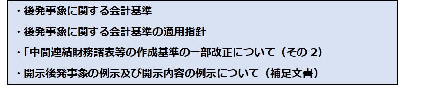 ASBJの以下のホームページ:補足文書「開示後発事象の例示及び開示内容例示について」