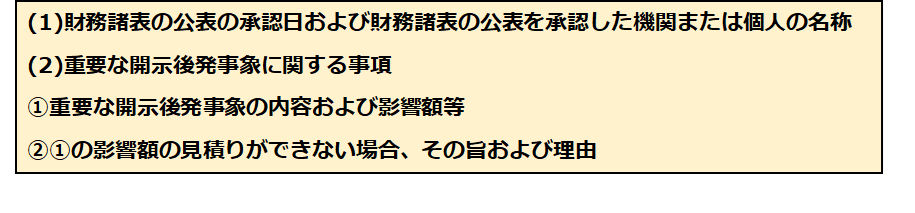 上記の通り、「財務諸表の公表の承認日および財務諸表の公表を承認した機関または個人の名称」の注記が新たに求められています。